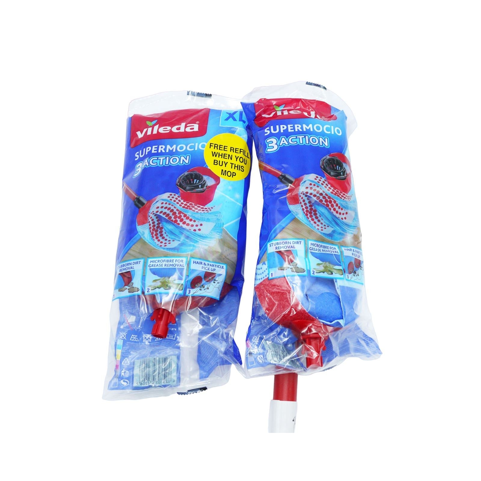 - The Vileda SuperMocio 3Action XL Mop with Extra Refill is designed to provide thorough and convenient floor cleaning.